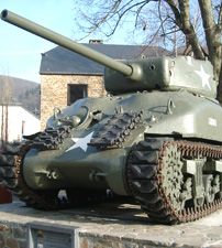 Es handelt sich dabei um einen Sherman M4A1. Es ist das Symbol der zweiten Befreiung im Januar 1945.