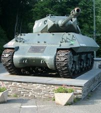 Het is een Sherman M4A1. Hij staat er als eerbetoon aan de 2de en 3de divisie Blindés van de Amerikanen die het duitse leger stopten in december 1944 en die La Roche en omgeving bevrijdden in januari 1945 tijdens de slag om de Ardennen.